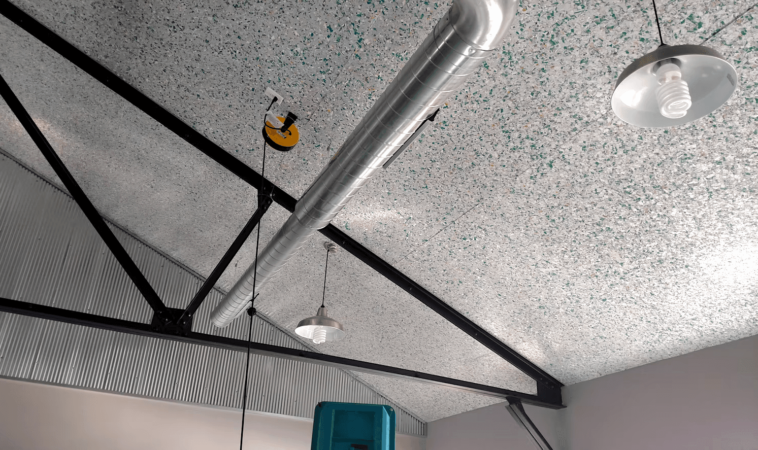 saveBOARD Ceiling Tiles is a unique structural composite panel made from 100% upcycled materials. The core of the product is made from shredded and compressed composite packaging, which can be seen through the transparent facing sheet. Aesthetically it allows the occupants to see the makeup of the board, while giving the user a sustainable and superior performing product.