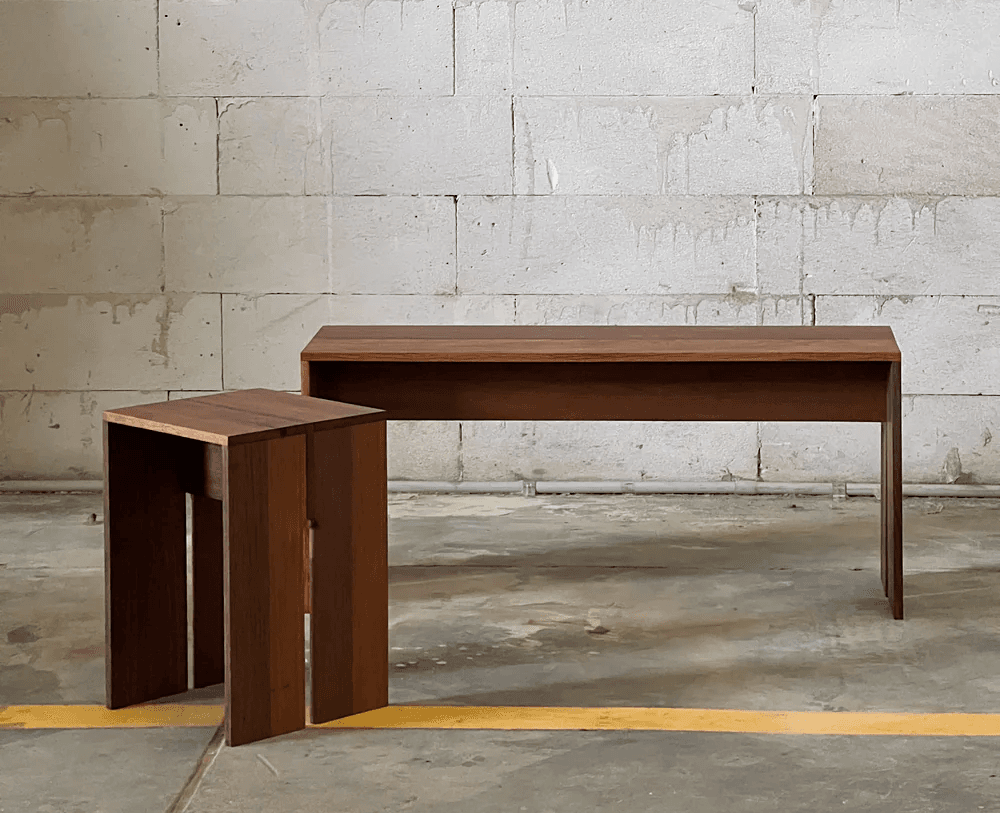 Derived from the off-cuts of timber flooring salvaged during the demolition of Brisbane's iconic Queenslander homes, this stool embodies sustainability and history. Demolition yards commonly discard shorter lengths or small quantities of salvaged timber. The flooring stool aims to make use of these lengths, using a combination of traditional carpentry and woodworking techniques to join the timber together.