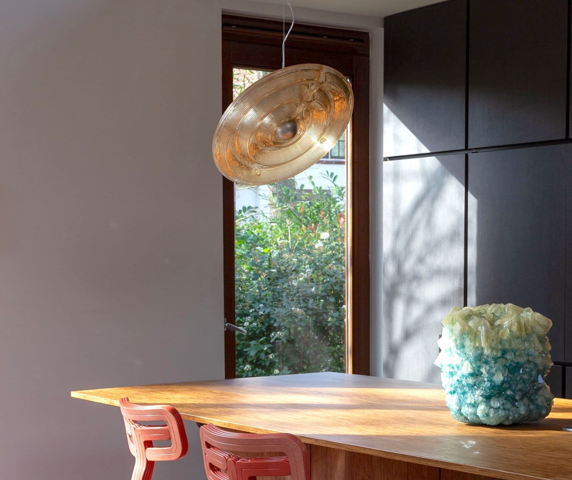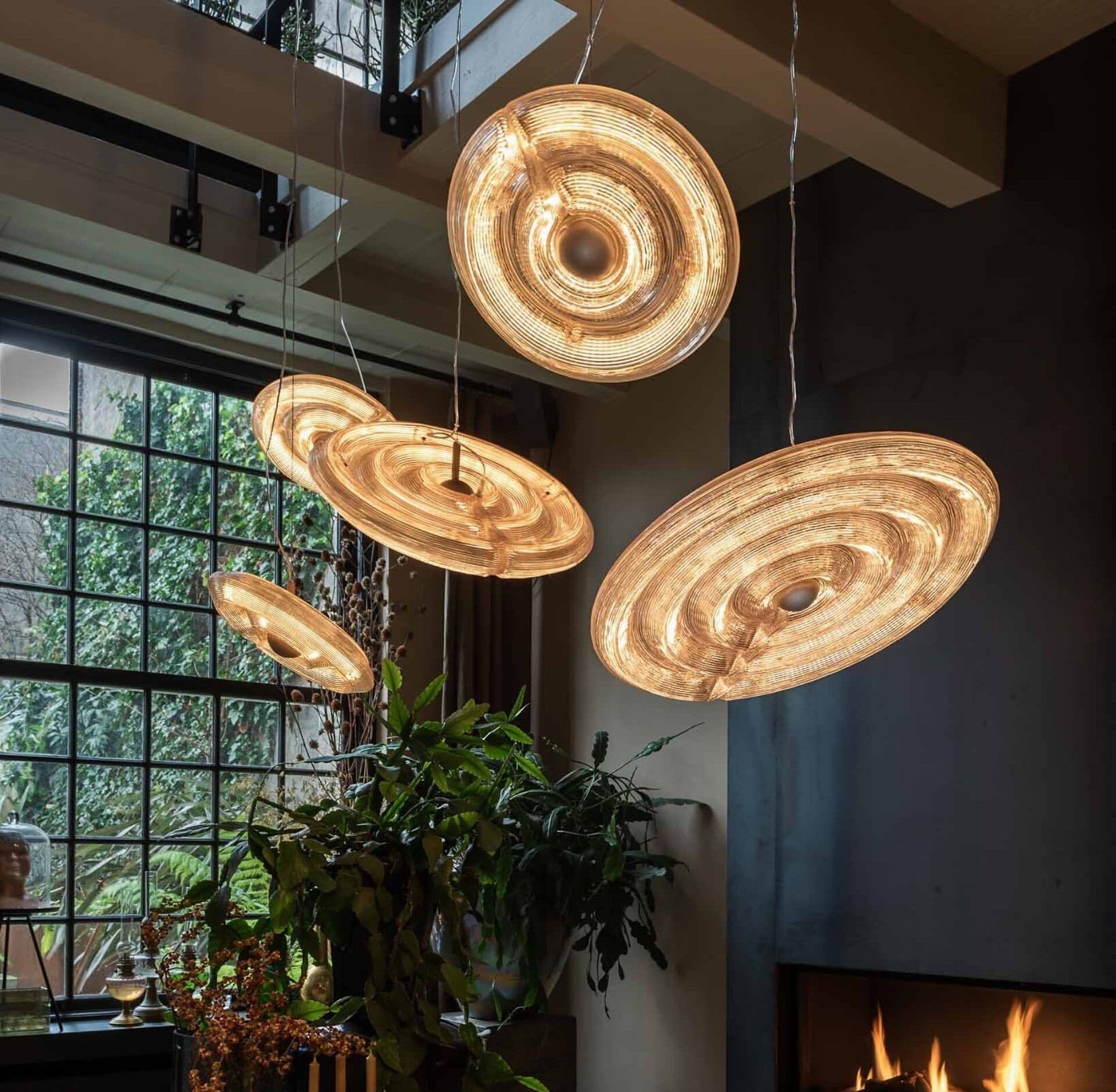 Hot ribbons of recycled plastic build the lens slowly, layer by layer. Sourced from rooftop windows, safety glasses, and industrial chocolate moulds, this unlikely source material gifts durability and glasslike transparency to the Fresnel.