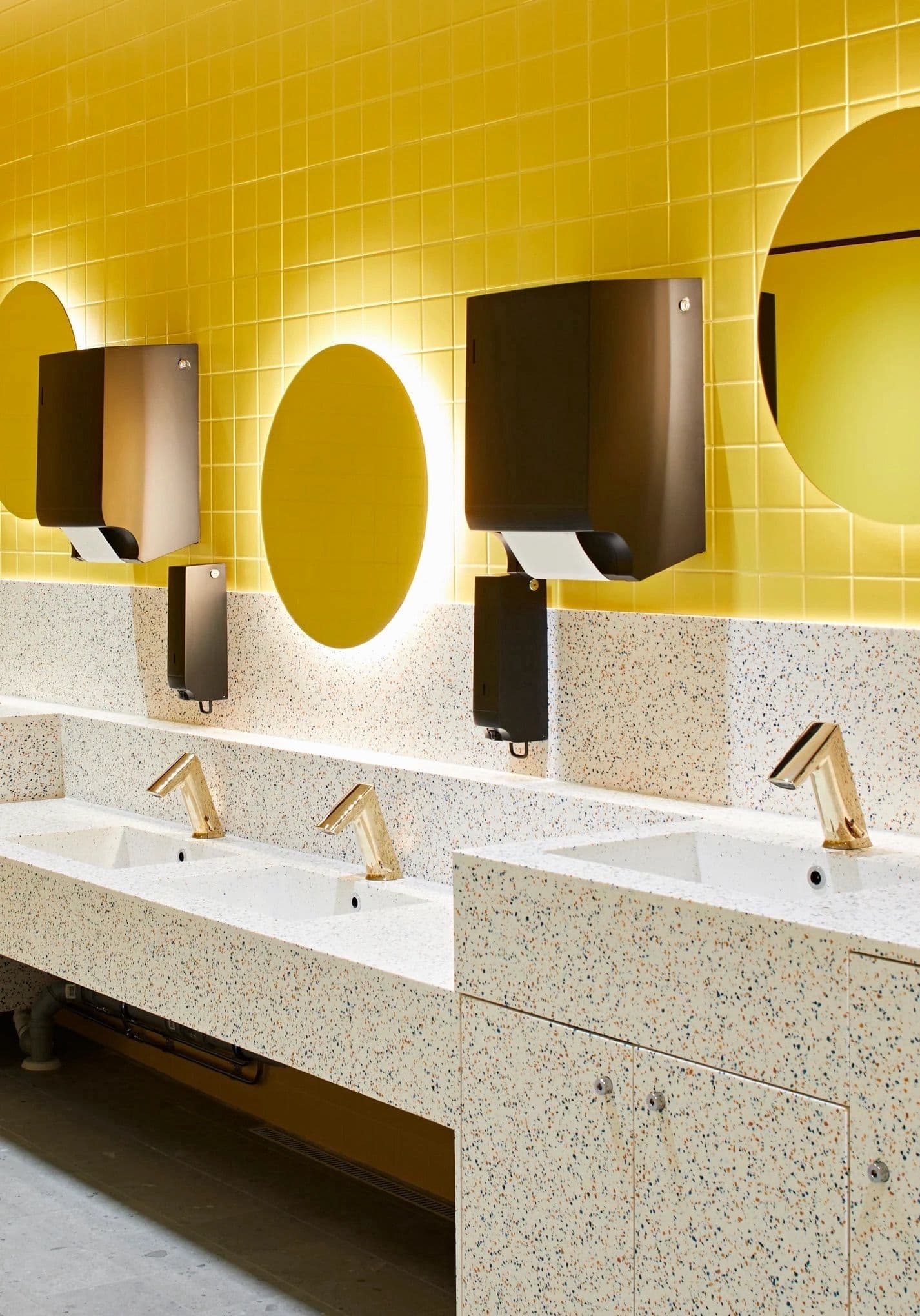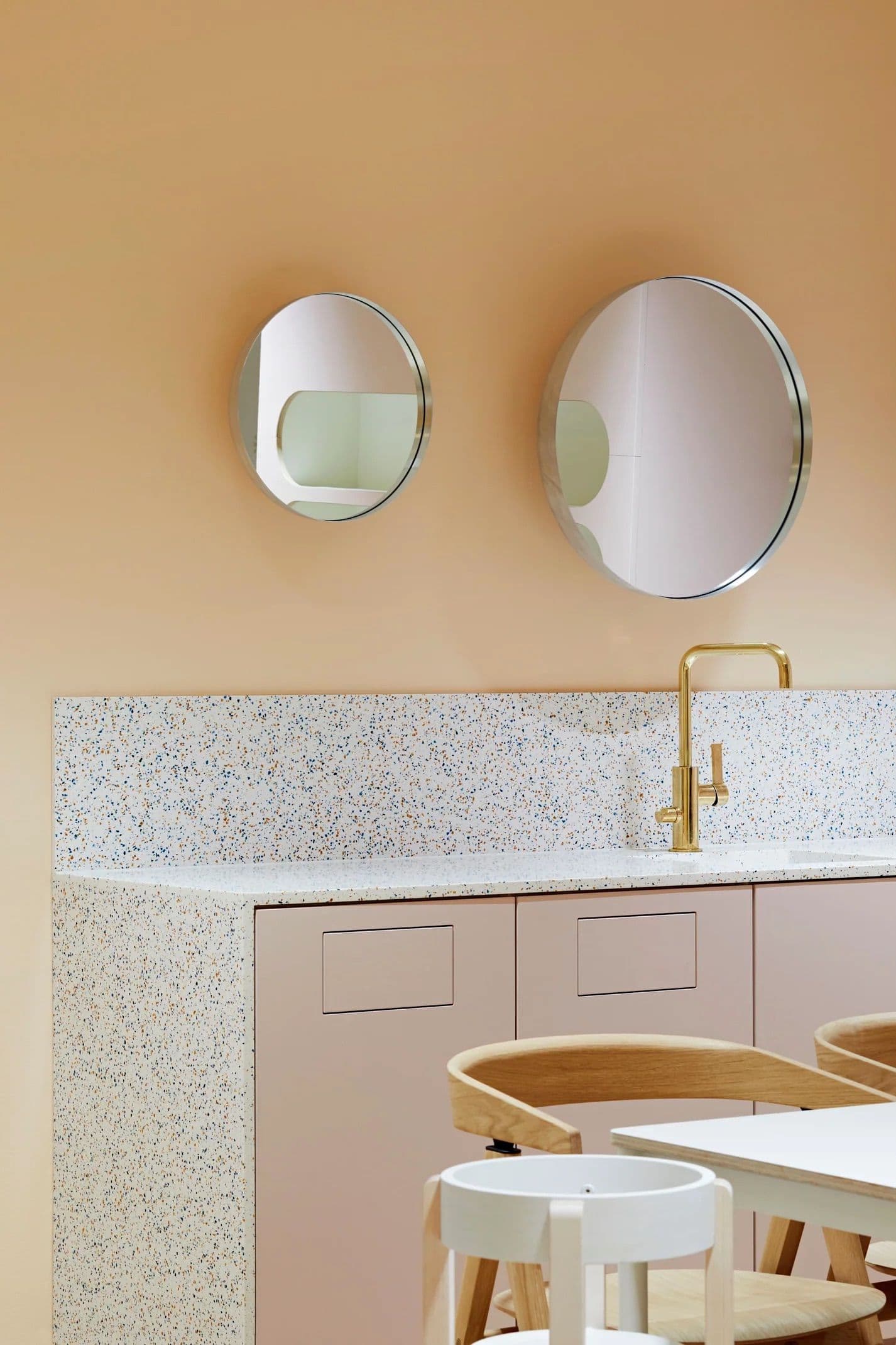 Shimmering colour speckles made of natural minerals are the core of the Durat Palace colour collection. Sparkling speckles highlights the 3D effect of the recycled pattern. Durat is a polyester-based composite solid surface material developed in Finland. It contains approximately 30% recycled plastic and is 100% recyclable. Post-industrial plastic waste is granulated, giving Durat its distinctive texture.