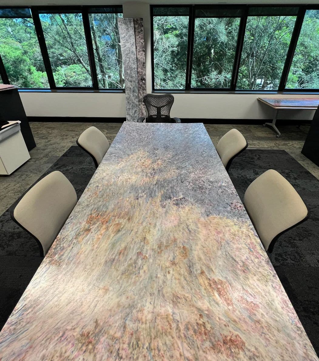 FABTEC is Australia's first patented* and CSIRO tested, waste-based composite made entirely from textile and plastic waste diverted from landfill. FABTEC comes from Textile Rescue Programs and began with over 80 tonnes of non-wearable textiles. The end-result is a ground-breaking robust, art-like composite material stronger than plastics and 100% recyclable.