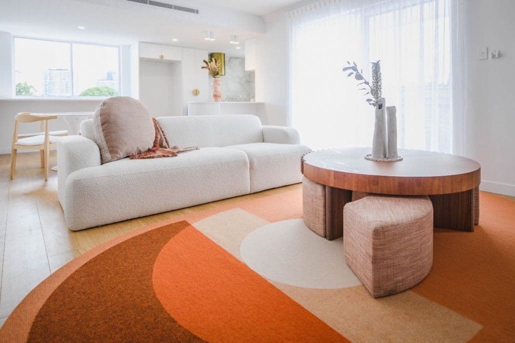 Tretford rugs are custom made in Australia, using Tretford carpet coming from Germany. Tretford is a contract quality carpet made with goat hair and is suited to all applications; commercial, education, residential, multi residential, as well as retail, hospitality and government projects. It has a ribbed profile and an extensive colour range.