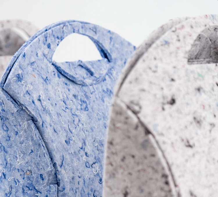 Made Entirely From recovered textiles, this is waste reimagined. To date, Upparel have saved over 10,000,000 textiles from entering landfills across Australia. Whilst a portion of these items are suitable for reuse through charity partners, many are not fit-for-wear and ready for a new life. UPtex is an acoustic sheet created from the nowhere-to-go textile waste.