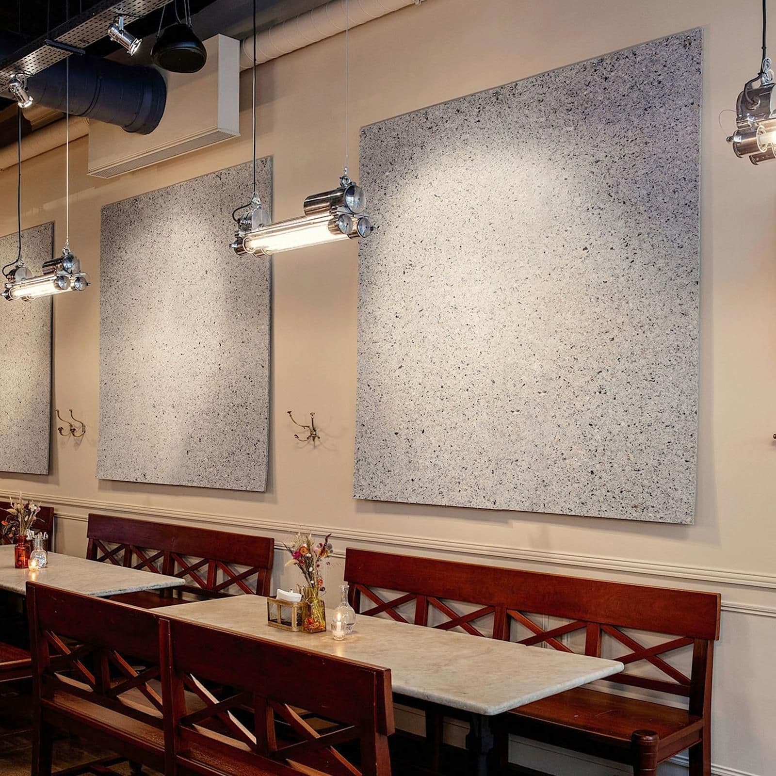 Pierreplume® is an acoustic panel made of recycled textiles for use in architecture and design. The products are made in France and are composed of more than 70% recycled fibres from industrial textile waste and clothing. The panels are semi-rigid and are highly absorptive acoustically.