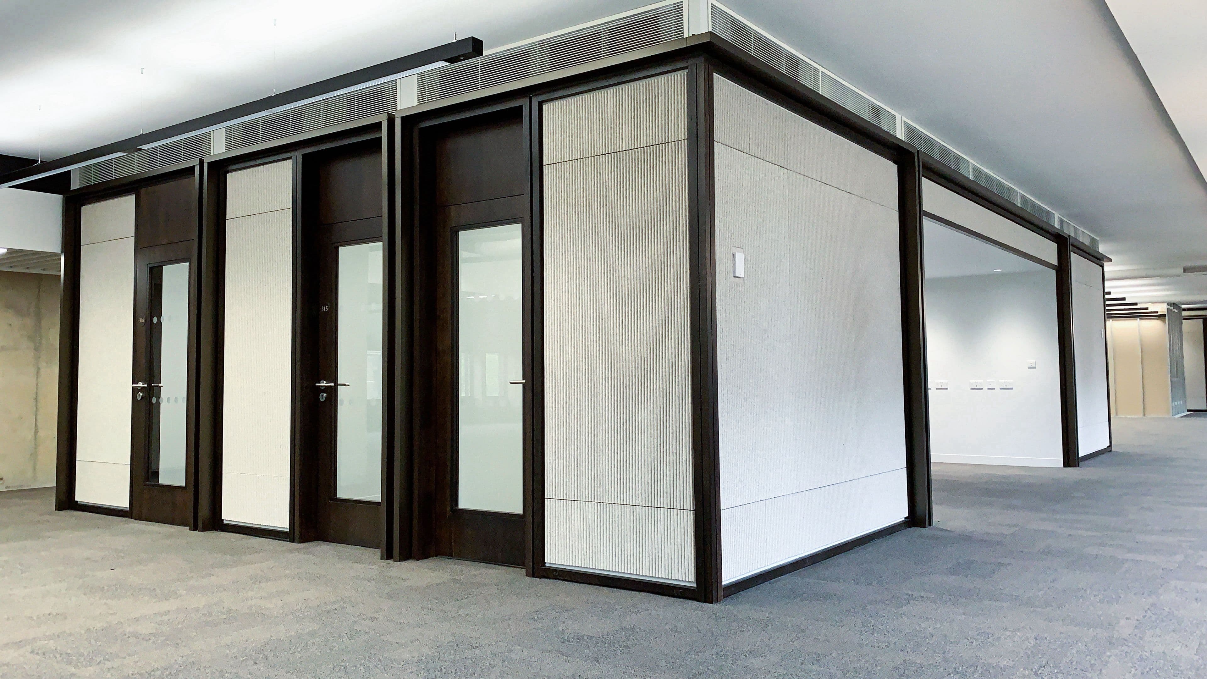 Ribbed acoustic wall and joinery lining